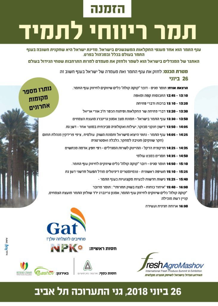 במקביל לתערוכה יתקיימו גם שני כנסים מקצועיים ענפיים, האחד בתחום הפלחה – המהווה 80 אחוז משטחי הגידול החקלאיים בארץ, והשני יעסוק בפרי התמר ושיווקו – הצלחה גדולה בישראל וברחבי העולם. שני הכנסים יתקיימו ב- 26 ליוני, וההשתתפות בהם כרוכה ברישום מוקדם.